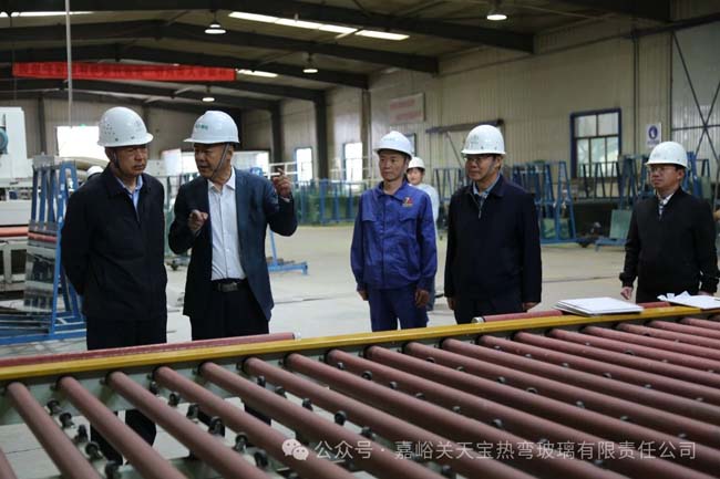 2024年9月14日上午九點(diǎn),嘉峪關(guān)市市委常委、常務(wù)副市長(zhǎng)石福勝及市工信局、工業(yè)園區(qū)管委會(huì)領(lǐng)導(dǎo)等一行蒞臨嘉峪關(guān)市天寶熱彎玻璃工藝有限責(zé)任公司調(diào)研指導(dǎo),企業(yè)負(fù)責(zé)人鄭普旺陪同。